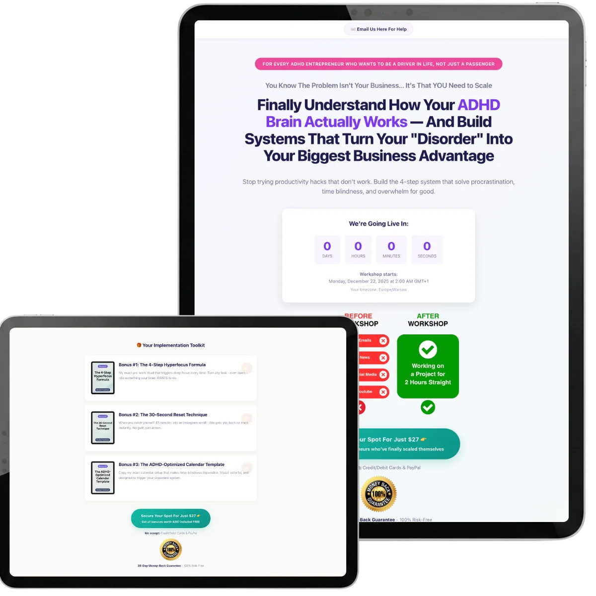| "I have 100 ideas but never finish anything" | 30-Day Project Completion System |